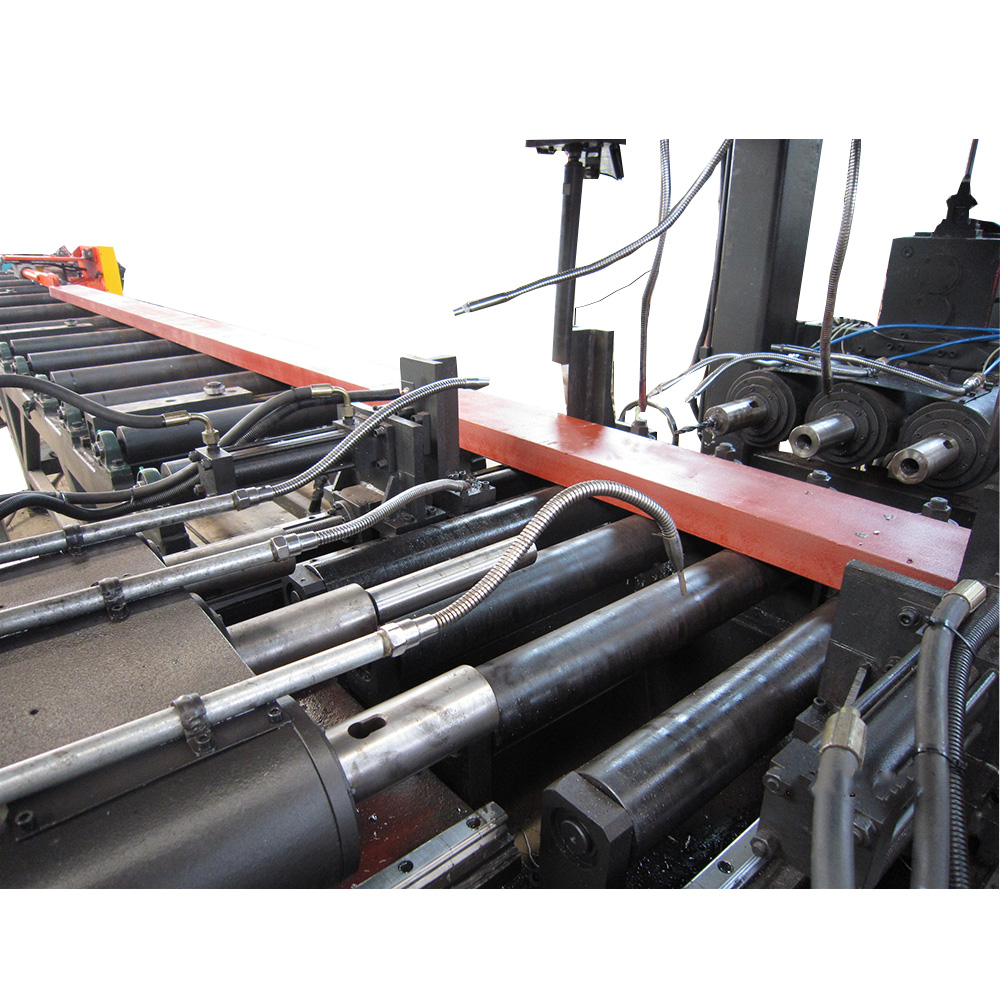 本機床主要用于H型鋼、槽鋼和箱型梁的鉆孔加工,廣泛用于立體車庫、鋼結(jié)構(gòu)建筑、橋梁、塔桅和網(wǎng)架等行業(yè)。4軸數(shù)控型鋼三維鉆床采用四個伺服電機實現(xiàn)2個垂直方向、1個水平方向和1個長度的鉆孔定位。3個鉆孔面上,每個面有3個鉆孔主軸,每個面上的3個鉆孔主軸由一臺變頻電機驅(qū)動,鉆孔主軸為自控行程鉆孔主軸,工件一次通過設(shè)備后三個面上的孔均可加工完畢,效率高,孔位精度高,是鋼結(jié)構(gòu)制造業(yè)中保證質(zhì)量的必不可少的設(shè)備。