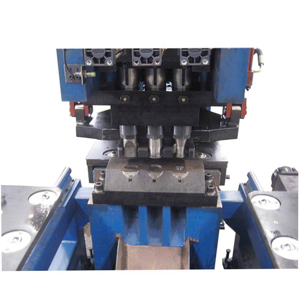 機身為C型鋼板焊接結(jié)構(gòu),剛性好,操作空間大。本機設(shè)有三個模位(其中有一個打字工位),模位切換自動進行。夾鉗系統(tǒng)能適合不同厚度的工作,設(shè)有基準零位擋塊,工件由滾球工作臺支撐。X軸及Y 軸運行由伺服電機及滾珠絲杠驅(qū)動,由雙軸數(shù)控系統(tǒng)控制沖孔位置。整個加工過程自動進行,操作者把工作尺寸輸入計算機,以后可以反復(fù)調(diào)用。